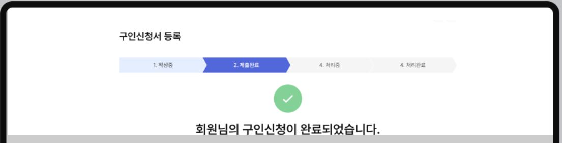 입력된 정보를 구인 처리하고, 구인신청 제출완료 화면으로 이동합니다.