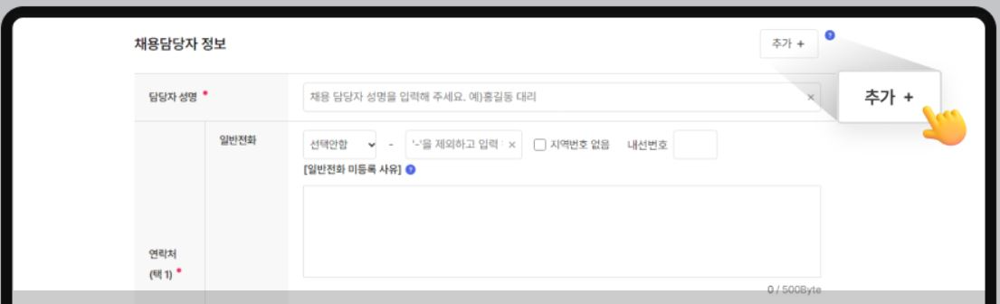 우측 상단의 추가 버튼을 누르면 채용담당자를 여러 명 등록할 수 있으며, 최대 3명까지 등록 가능합니다.