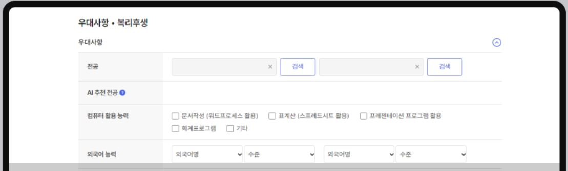 5. 우대사항・복리후생 > 우대사항 영역