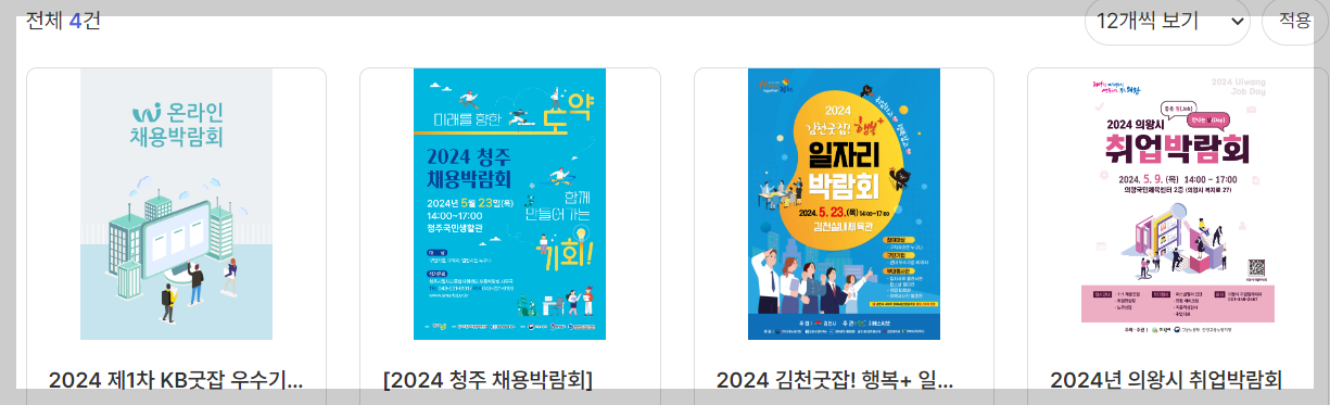 이제 채용박람회도 고용24 홈페이지 온라인 채용박람회 페이지에서 비대면으로 정보를 확인할 수 있으며 전국 고용센터, 자치단체 등 공공 취업알선기관에서 운영하는 채용박람회 정보와 행사에 참여하는 일자리정보를 확인 할 수 있습니다.